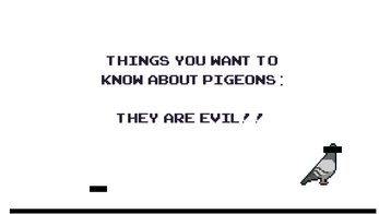 click on the pigeon's eye to go to next page and click on the black block on the left to go to previous page